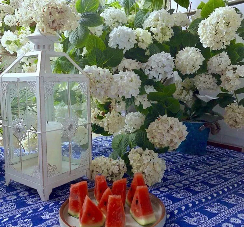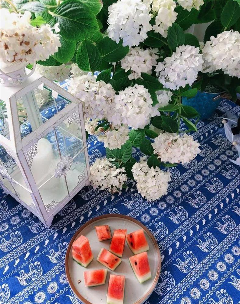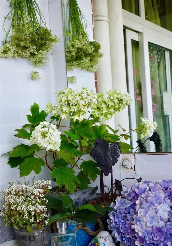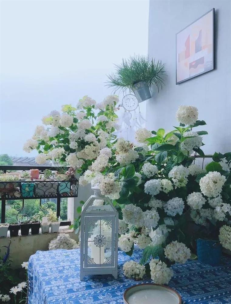 Luôn nhận được nguồn ánh sáng tự nhiên quanh năm nên các loài cây có trong khu vườn đều phát triển rất tốt. Thỉnh thoảng, Quân sẽ cắt những bó hoa cẩm tú cầu để cắm hoặc dành tặng bạn bè, hàng xóm xung quanh. Quân cũng chú ý đến việc tưới cây, bón phân và thay đất hợp lý để đảm bảo điều kiện phát triển tốt nhất cho tất cả các loài cây.