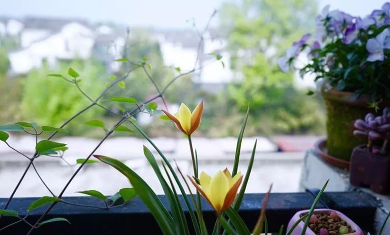 Mong muốn có một không gian thư thái nên Quân lựa chọn các loài hoa có màu sắc nhẹ nhàng. Ngoài ra, Quân còn đặt một giá treo bên ban công để đặt những chậu cây xương rồng.