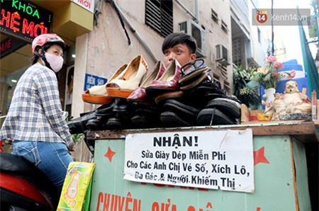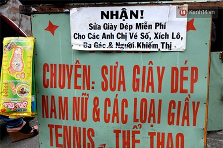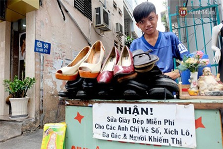 sửa giày dép cho các anh chị vé số, xích lô, ba gác và người khiếm thị"