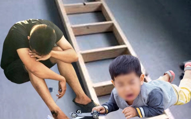 Đứa nhỏ kia lại không chịu yên phận. Nó đi đến cái thang rồi dùng tay đẩy khiến cho anh ngã từ trên cao xuống. Sau đó thằng bé tiếp tục cầm đồ chơi rồi chạy ra phía mẹ mình.