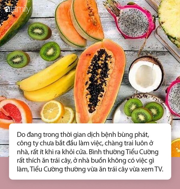 Sau đó, bác sĩ đã hỏi lịch sử y tế một cách cẩn thận và phát hiện ra rằng chàng trai trẻ là Tiểu Cường, 25 tuổi và là một nhân viên doanh nghiệp. Do đang trong thời gian dịch bệnh bùng phát, công ty chưa bắt đầu làm việc, chàng trai luôn ở nhà, rất ít khi ra khỏi cửa. Bình thường Tiểu Cường rất thích ăn trái cây, ở nhà buồn không có việc gì làm, Tiểu Cường thường vừa ăn trái cây vừa xem TV.