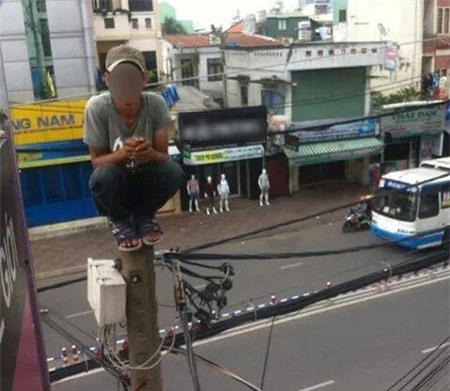 Trên mạng vừa xuất hiện bức ảnh ghi lại cảnh một chàng trai leo lên cột điện, ngồi chụp hình. Hành động này nhanh chóng nhận được sự quan tâm và chỉ trích của cư dân mạng.
