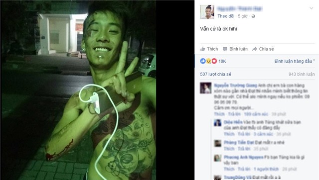 Được biết trước đó ít giờ, Đạt cũng bị ngã xe máy nhưng chỉ bị xây xát nhẹ. Cậu còn đăng ảnh trên Facebook với nụ cười tươi trên môi, dù có vết máu bên mắt phải và cánh tay, kèm theo mô tả lạc quan: “Vẫn cứ là ok, hihi”.