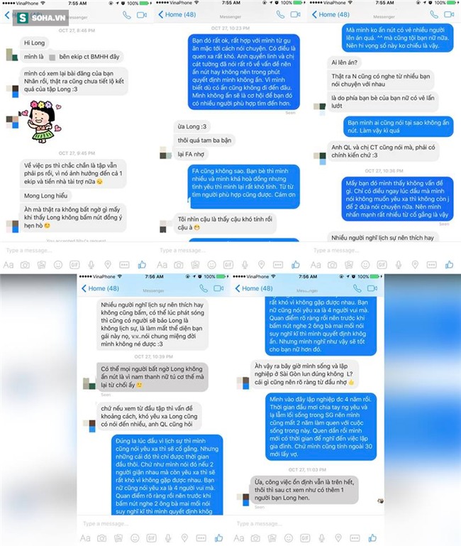 Cùng chia sẻ của mình, Hoàng Long có đăng tải hình ảnh đoạn chat của anh với nhân viên của ê kíp biên tập chương trình. Trong cuộc nói chuyện với nhân viên này, Hoàng Long có nói rõ về việc tại sao anh không bấm nút hẹn hò.