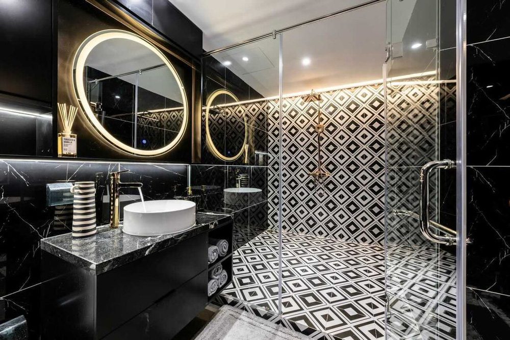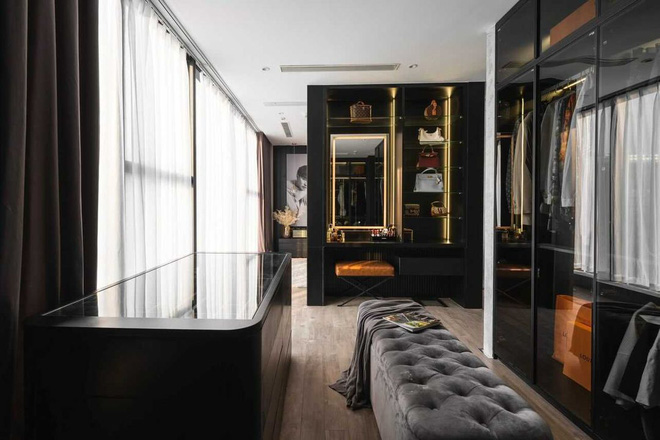 Làm trong ngành thời trang, vậy nên anh Công Lee muốn mọi góc trong nhà đều phải ấn tượng và thể hiện cá tính riêng. Để làm nổi bật sự hiện đại cũng như sang trọng, anh sử dụng tone màu đen làm chủ đạo và điềm nhấn là vàng gold, ghi trắng. Vật liệu là những loại xu hướng mới với công năng hiệu quả, cụ thể là gỗ và đá ốp vì vừa bền vừa thẩm mỹ.