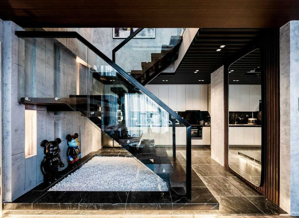 Khoảng thông tầng đắt giá của căn hộ được dành cho không gian sinh hoạt chung và tụ tập bạn bè