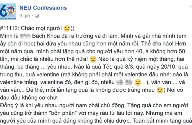 Chàng trai trong tâm sự gây sốt trên NEU Confessions mới đây cũng vậy. Anh là cựu sinh viên Bách Khoa Hà Nội, đã ra trường và đi làm. Người yêu anh kém tuổi và đang còn là sinh viên.