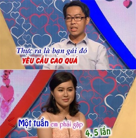 Chia sẻ về mẫu người bạn trai lựa chọn Thanh Trà bày tỏ, đối phương phải là người chân thật, sống có lập trường, hoài bão. Về ngoại hình cô gái không đòi hỏi cao và hài hước chia sẻ "chỉ cần xấu xấu như anh Quyền Linh" khiến khán giả cười nghiêng ngả. Đáp lại câu hỏi của "bà mai" Cát Tường về nhan sắc, Văn Trung hóm hỉnh nhận bản thân đẹp hơn Quyền Linh.