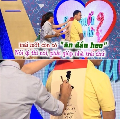 Đến với chương trình, ngoài giành tặng ông mai cuốn thư pháp tự tay sáng tác, Văn Trung cũng đặc biệt tặng riêng bạn gái món quà ý nghĩa nhưng phải đến khi bức màn vén lên anh mới xin phép được hoàn tất. Và để hoàn tất món quà, Văn Trung đã phải mượn tấm lưng của Quyền Linh trổ tài viết thư pháp khiến mọi người thích thú. Với sự hỗ trợ của ông bà mai mối, Trung xuất sắc hoàn thành bức thư pháp.