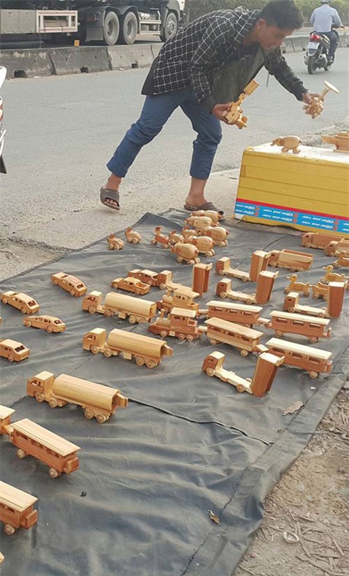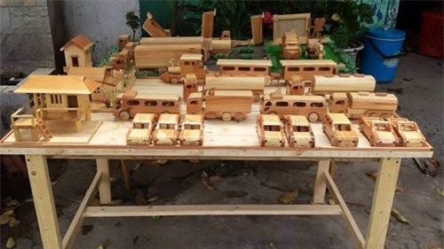 “Phải mất vài tháng tôi mới làm xong một chiếc xe đồ chơi bằng gỗ. Khi đưa cho mấy đứa trẻ hàng xóm chơi, chúng thích lắm. Bố mẹ đứa khác thấy thế cũng đặt cho con mình. Tôi mới nghĩ, sản phẩm này rất có triển vọng, có thể làm nhiều hơn rồi kinh doanh”, Hùng chia sẻ.