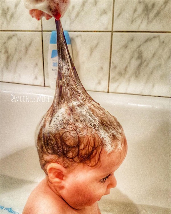 Mỗi giờ tắm với Lulu cũng là một giờ trải nghiệm. Cô bé thích thú khi được mẹ cho nằm trong một chiếc chậu phủ đầy bong bóng xà phòng.