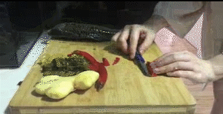 Công đoạn sơ chế, tẩm ướp được cô nàng xử lý rất nhanh
