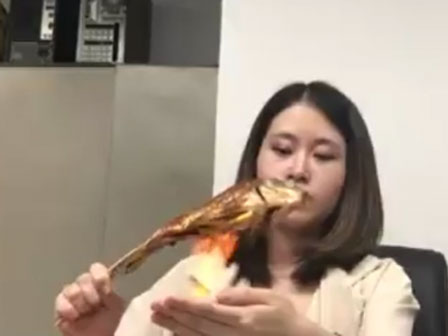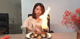 Lần tái xuất này, chị đại văn phòng thể hiện màn ảo thuật, nướng cá ngay trên tay.