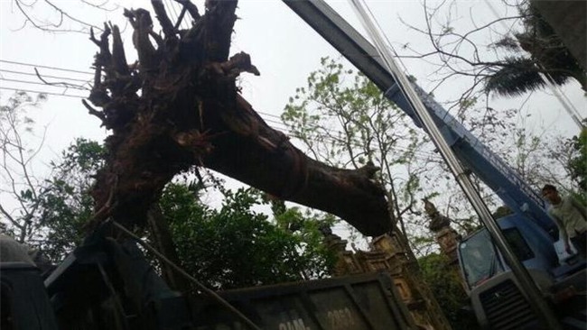 Ngày 25/3, cây sưa 200 năm tuổi từng được đồn đoán với giá 50 tỷ đồng nhưng thực tế chỉ đấu giá được 24,5 tỷ ở đình làng Đông Cốc (Hạ Mãn, Thuận Thành, Bắc Ninh) đã được chặt hạ.