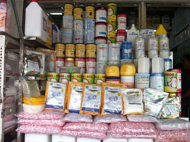Thấy lạ kỳ khi ly nước đậu nành lỏng như nước suối nhưng lại có mùi thơm nồng như vậy, chúng tôi đến chợ Kim Biên – chợ hóa chất lớn nhất tại TP HCM, mong tìm được câu trả lời. Ban đầu, nhiều cửa hàng khá thờ ơ, nhưng khi khách mua cho hay sắp mở xe nước vỉa hè cần lấy mối thì họ hồ hởi trả lời ngay.