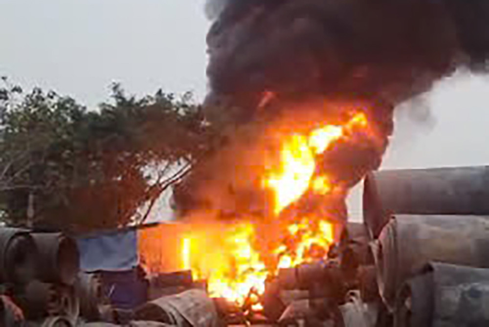 Tuy nhiên, chất cháy gồm cao su, gỗ phế liệu nên ngọn lửa nhanh chóng bùng lên dữ dội và lan rộng.