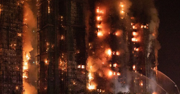 Tòa nhà Wang Cheong sau vụ hỏa hoạn. Ảnh: HK01