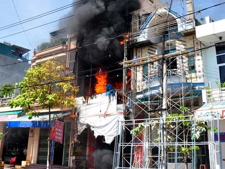 Trong lúc hàn sửa nhà ông Phàng, công nhân để tia lửa phụt qua gây ra vụ cháy lớn ở cửa hàng ba tầng của gia đình ông Bình