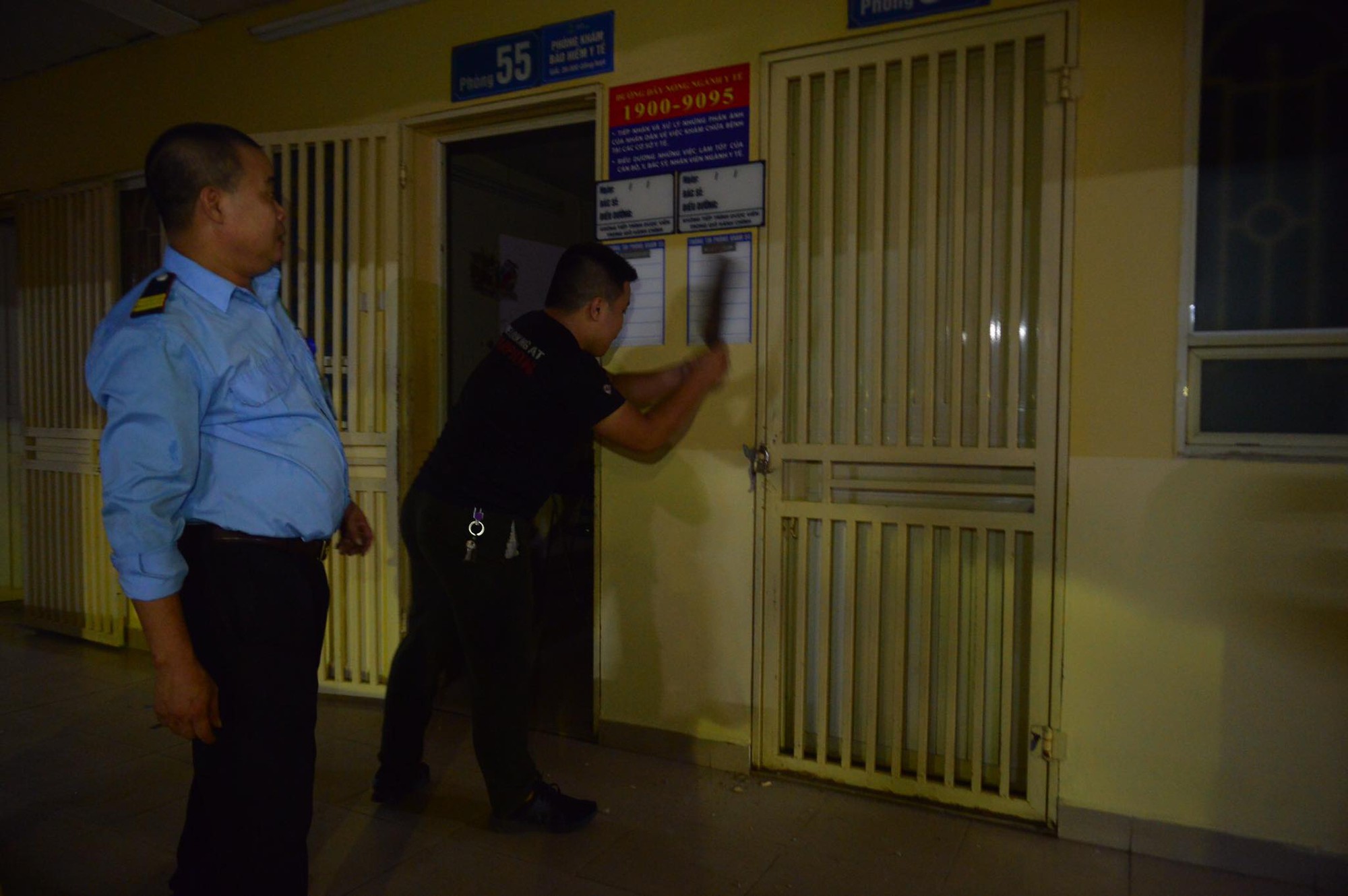 Lực lượng bảo vệ phá cửa để vận chuyển đồ đạc ra ngoài - Ảnh: Phương Thảo