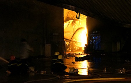 Hàng ngàn m2 nhà xưởng đã chìm trong biển lửa, lực lượng chức năng cũng chỉ có thể “cầm chân” không cho đám cháy lan rộng. Đến rạng sáng nay 26/6, đám cháy vẫn chưa được khống chế.