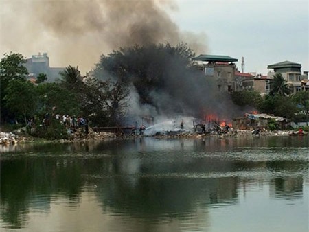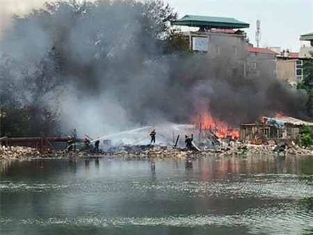 13h hôm nay, một đám cháy lớn đã xảy ra tại dãy nhà tạm quanh hồ Linh