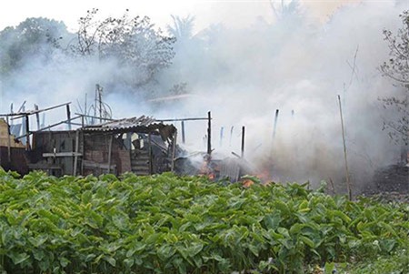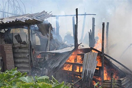 Dãy nhà tạm chìm trong lửa. Ảnh: otofun |