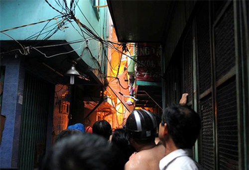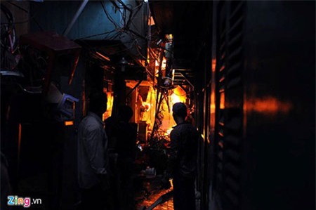 Cảnh sát và người dân trèo lên các mái nhà và được tường để lấy đưa ống nước vào bên trong. Khu vực cháy có nhiều nhà dân nhỏ, nằm trong ngõ sâu nên xe nước không vào được bên trong.