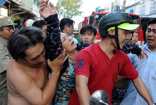 Theo phóng viên tại hiện trường, nhiều người khóc ngất vì tài sản trong nhà bị cháy, họ không di dời kịp. Có người quỳ giữa đường than khóc. Ảnh: H.A |