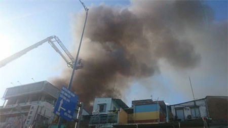 15h30, khu dân cư trên đường Yersin, đoạn gần đại lộ Võ Văn Kiệt (quận 1, TP HCM) xảy ra cháy lớn.