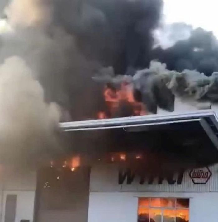 Lửa khói bao trùm lên toàn bộ nhà xưởng. Ảnh: Facebook