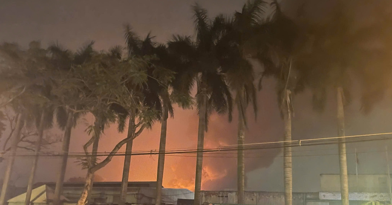 Do bên trong nhà kho chứa nhiều vật liệu dễ cháy nên ngọn lửa lan nhanh và bao trùm toàn bộ khu vực.