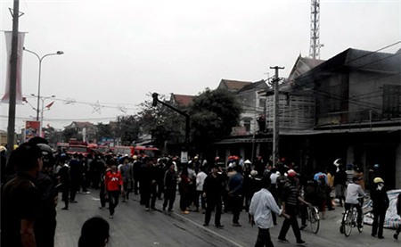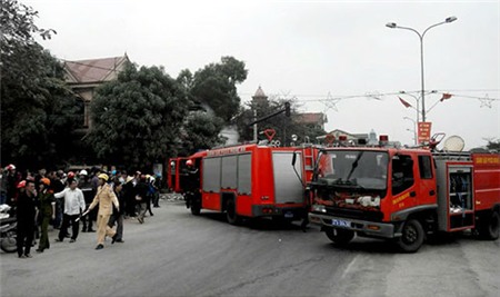 Công an huyện Nghi Lộc cũng huy động khoảng 100 cán bộ đến tham gia chữa cháy và bảo vệ hiện trường.