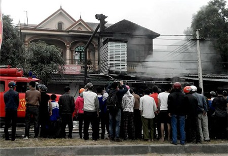 Thời điểm xảy ra vụ cháy, chủ nhân căn nhà (Trưởng phòng PC81, CA Nghệ An) đi vắng, cửa nhà khóa kín. Lực lượng chức năng phải phá khóa để đưa đồ đạc ra ngoài và chữa cháy. |