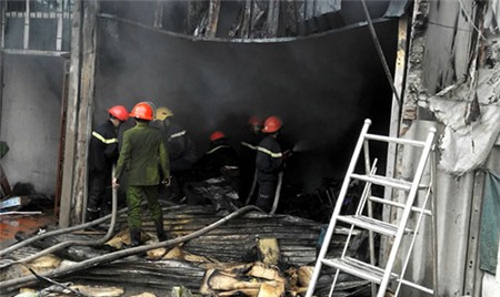 Sau khoảng 30 phút, lực lượng chức năng đã khống chế được ngọn lửa. Tầng 1 căn nhà bị thiêu rụi. Những hộ dân bên cạnh kinh doanh sách vở, đồ gia dụng cũng phải vận chuyển hàng hóa ra ngoài.