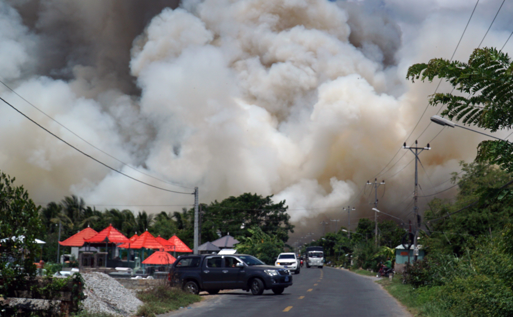 Khói mù mịt xuất phát từ đám cháy trong Vườn quốc gia Tràm Chim. Ảnh: E.X