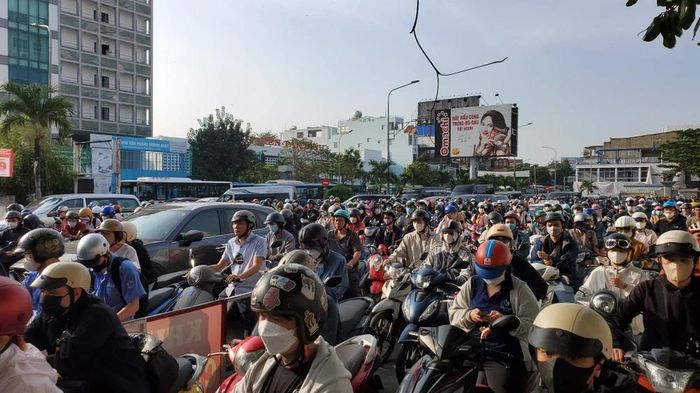 Ảnh hưởng từ vụ cháy khiến giao thông qua khu vực kẹt cứng.