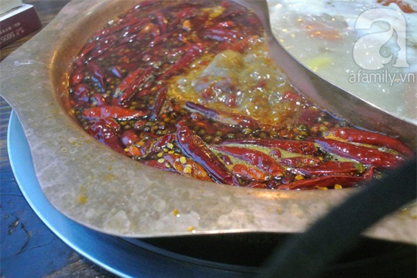 “Tần số” tiêu ớt đậm đặc ở ngăn nước lẩu cay.