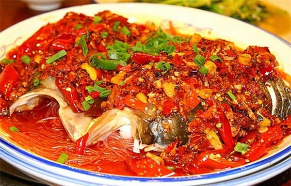 Đầu cá hấp ngâm ớt Hồ Nam thực sự là một trong món ăn cay nhất của Trung Quốc. Thay vì chỉ dùng ớt đỏ, đầu bếp ở đây sử dụng cả ớt xanh và ớt đỏ để tạo thêm màu sắc cho món ăn. Các món ăn kèm gồm mì trứng và canh cá, tạo thành bữa ăn đủ dinh dưỡng và ngon miệng. Tuy nhiên với lượng ớt phủ kín mặt cá thế kia, hãy chuẩn bị tinh thần để vừa ăn vừa xuýt xoa vì cay nhé!