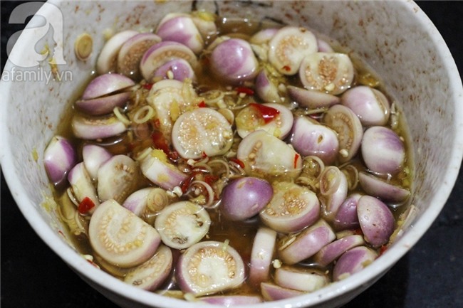 Đổ cà vào bát nước mắm trộn đều để các gia vị thấm đều vào từng miếng cà. Ngâm cà khoảng 3 – 4 giờ là bạn có thể thưởng thức được ngay.