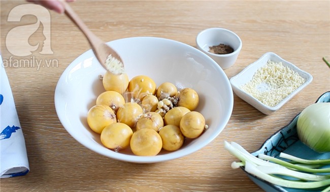 Ướp với ½ thìa café hạt nêm, ½ thìa café muối, ½ thìa café tiêu.