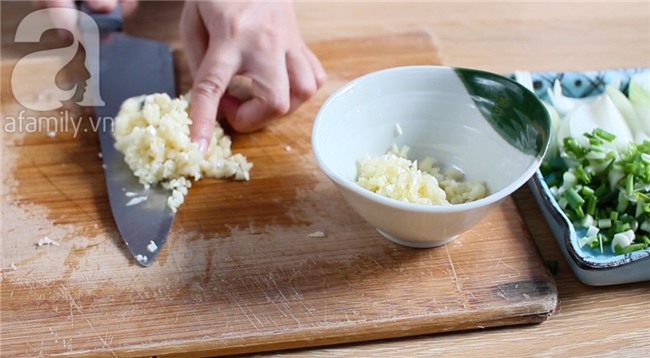 Rắc thêm tỏi phi vàng và hành lá lên, dùng nóng.