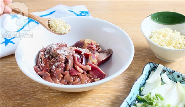 Gan mề gà sau khi rửa sạch với muối. Cắt miếng vừa ăn.