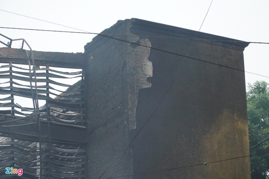 Một phần tường bao của nhà chợ cũng đổ. Các hạng mục khác biến dạng, bong tróc, nứt toác.