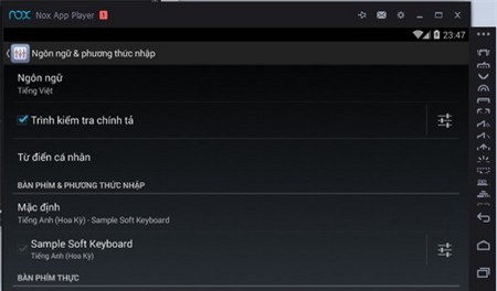 Mặc định, giao diện của nền tảng Android trên Nox App Player sẽ là tiếng Anh, người dùng có thể chuyển giao diện này sang tiếng Việt bằng cách chọn mục “Settings”, tìm đến mục “Language & Input”. Tại mục “Language” ở giao diện hiện ra sau đó, bạn chọn “Tiếng Việt” có trong danh sách, bây giờ ngôn ngữ mặc định của Android sẽ được chuyển sang tiếng Việt.