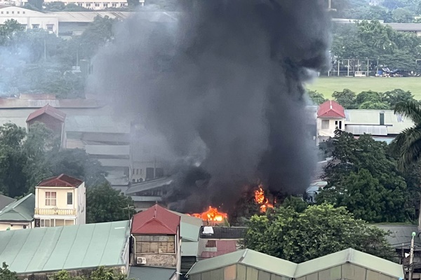 Đến thời điểm 18h50, khói đen vẫn bốc cao, lực lượng cứu hỏa nỗ lực dập lửa.