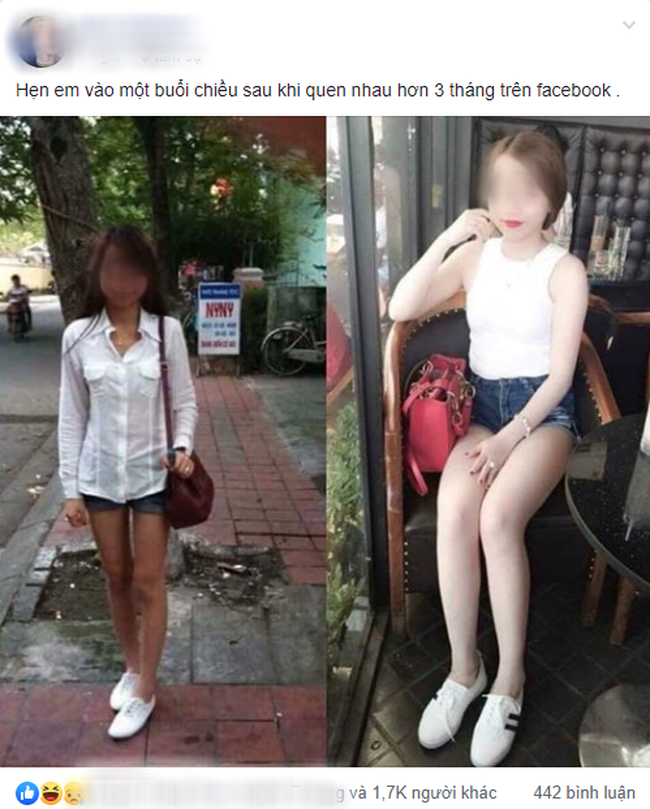 Sau khi về, anh chàng lập tức đăng tải nỗi thất vọng của mình lên MXH, kèm theo đó là 2 tấm ảnh của cô gái, một là ảnh đăng tải trên mạng và một là ảnh anh chàng gặp cô gái ở ngoài đời: "Hẹn em vào một buổi chiều sau khi quen nhau hơn 3 tháng trên Facebook".