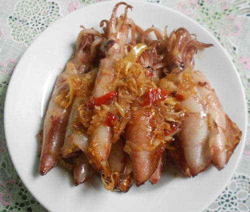 Mực sốt tỏi ớt ăn với cơm nóng rất ngon mà ai cũng phải tấm tắc khen ngon.