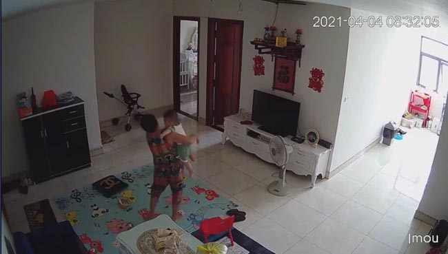 Bé trai gào khóc, người giúp việc vẫn dửng dưng