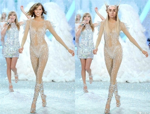 liếng tình tứ của anh hoàn toàn hợp với bộ đồ mà thiên thần Candice Swanepoel mặc.