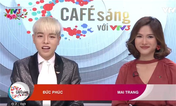Mới đây, nam ca sĩ Đức Phúc trở thành khách mời của chương trình Café sáng với VTV3. Không chỉ là khách mời đơn thuần, quán quân Giọng hát Việt 2015 còn có cơ hội thử sức với vai trò là một người dẫn chương trình tin tức.